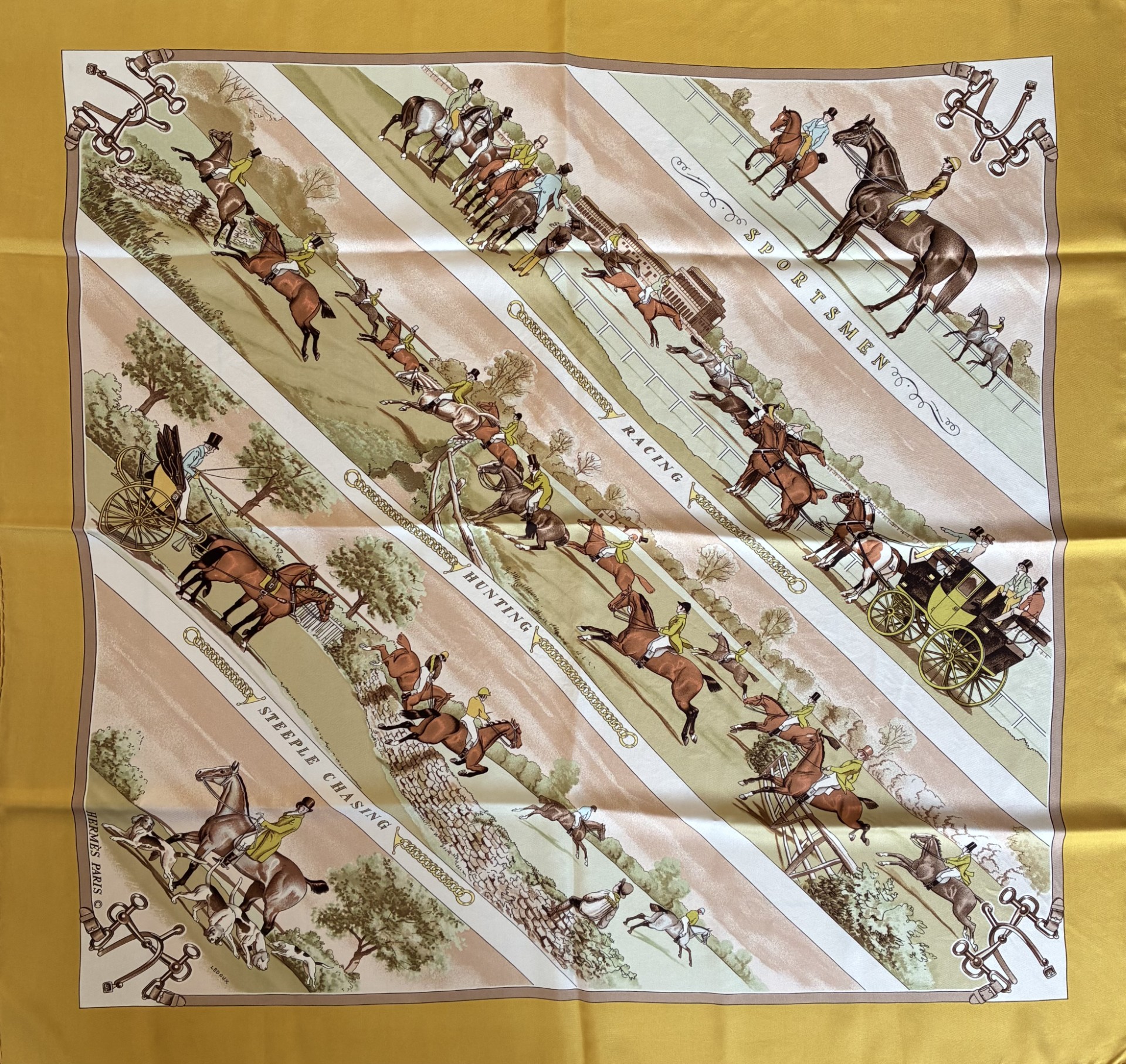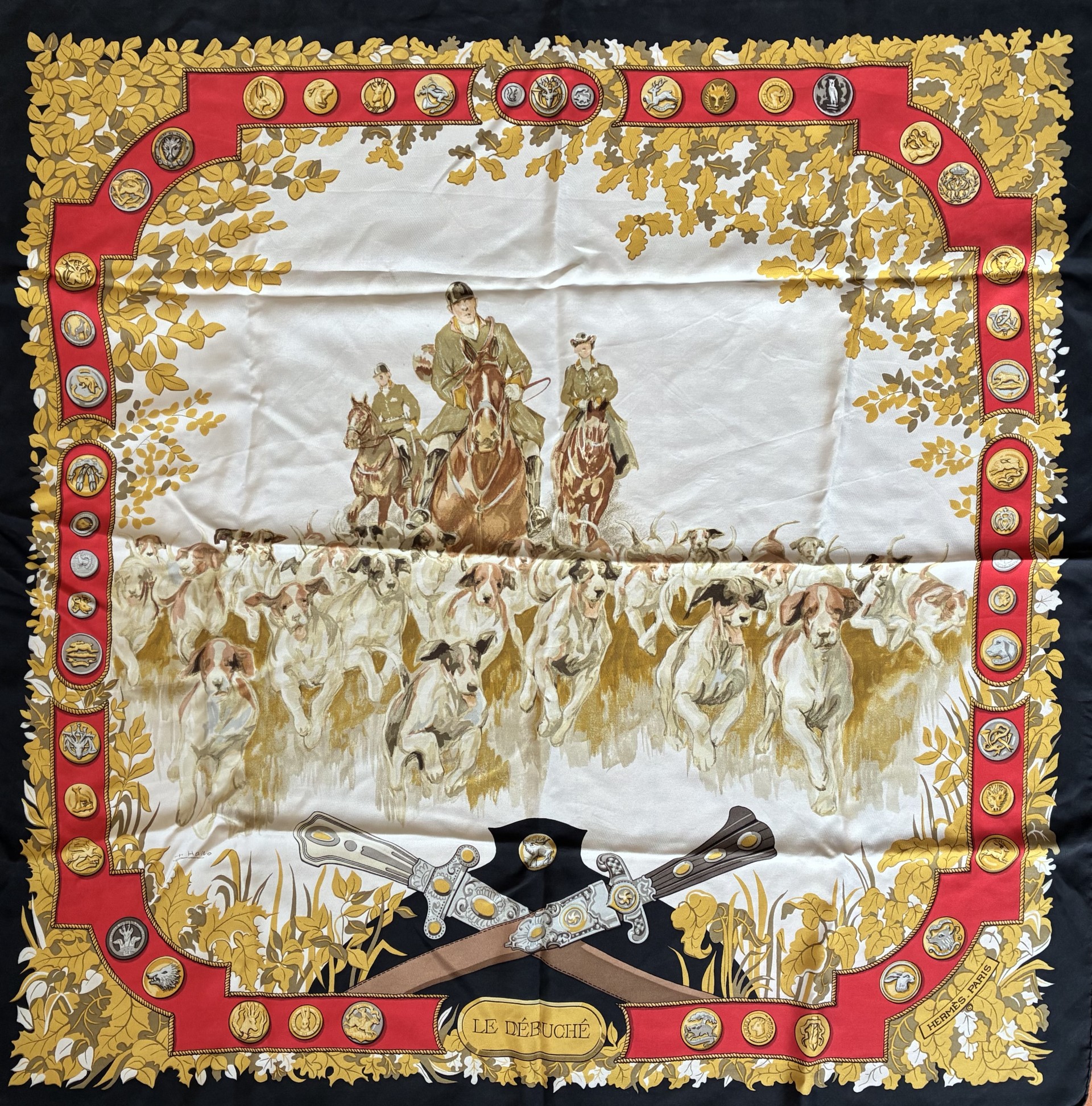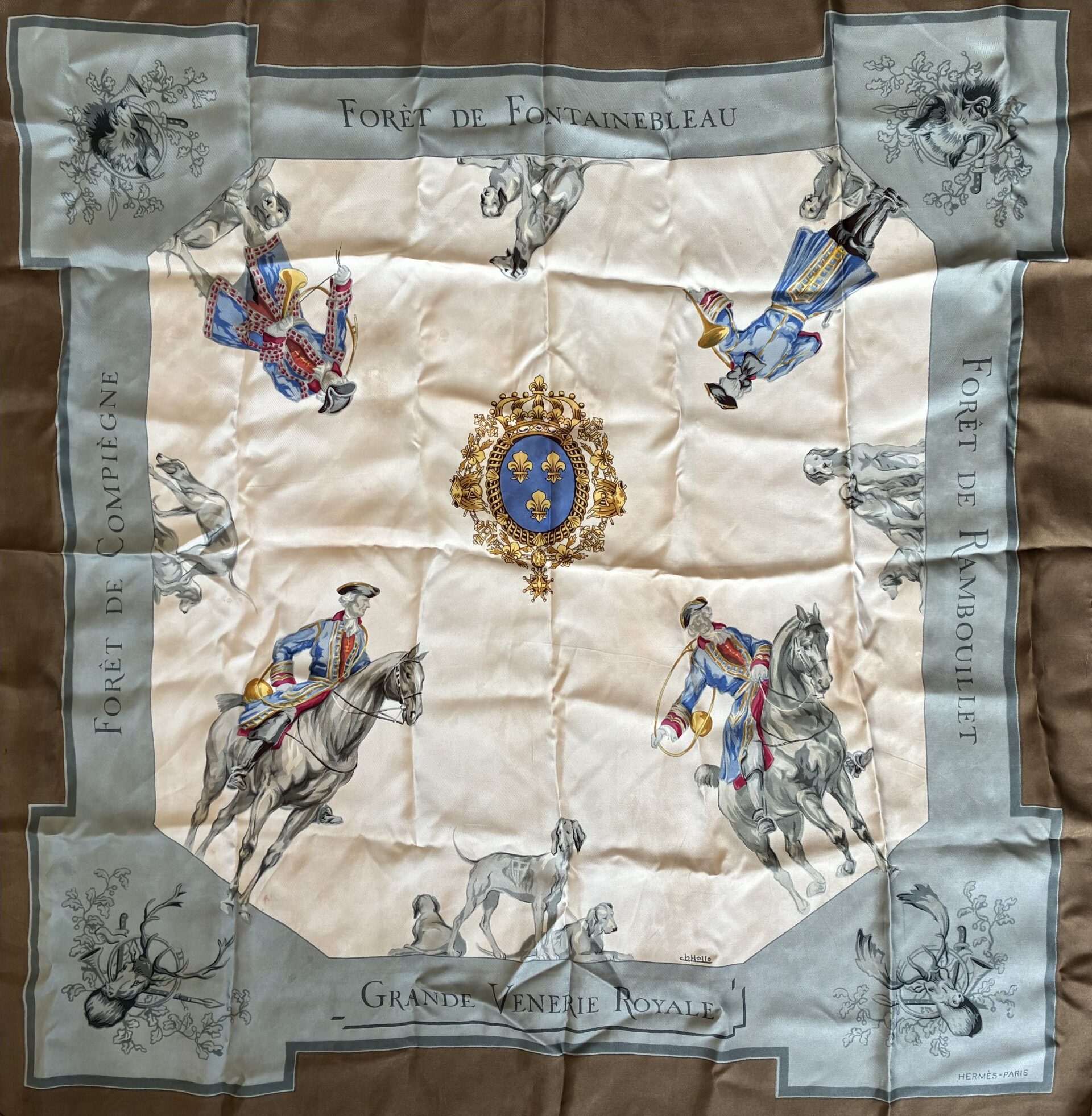 Grande Vènerie Royale Par Charles Jean Hallo (1882-1969) Sur fond crème, bordure marron, titré en bas au centre, signé et estampillé en bas à droite, édité en 1957 90×90 cm