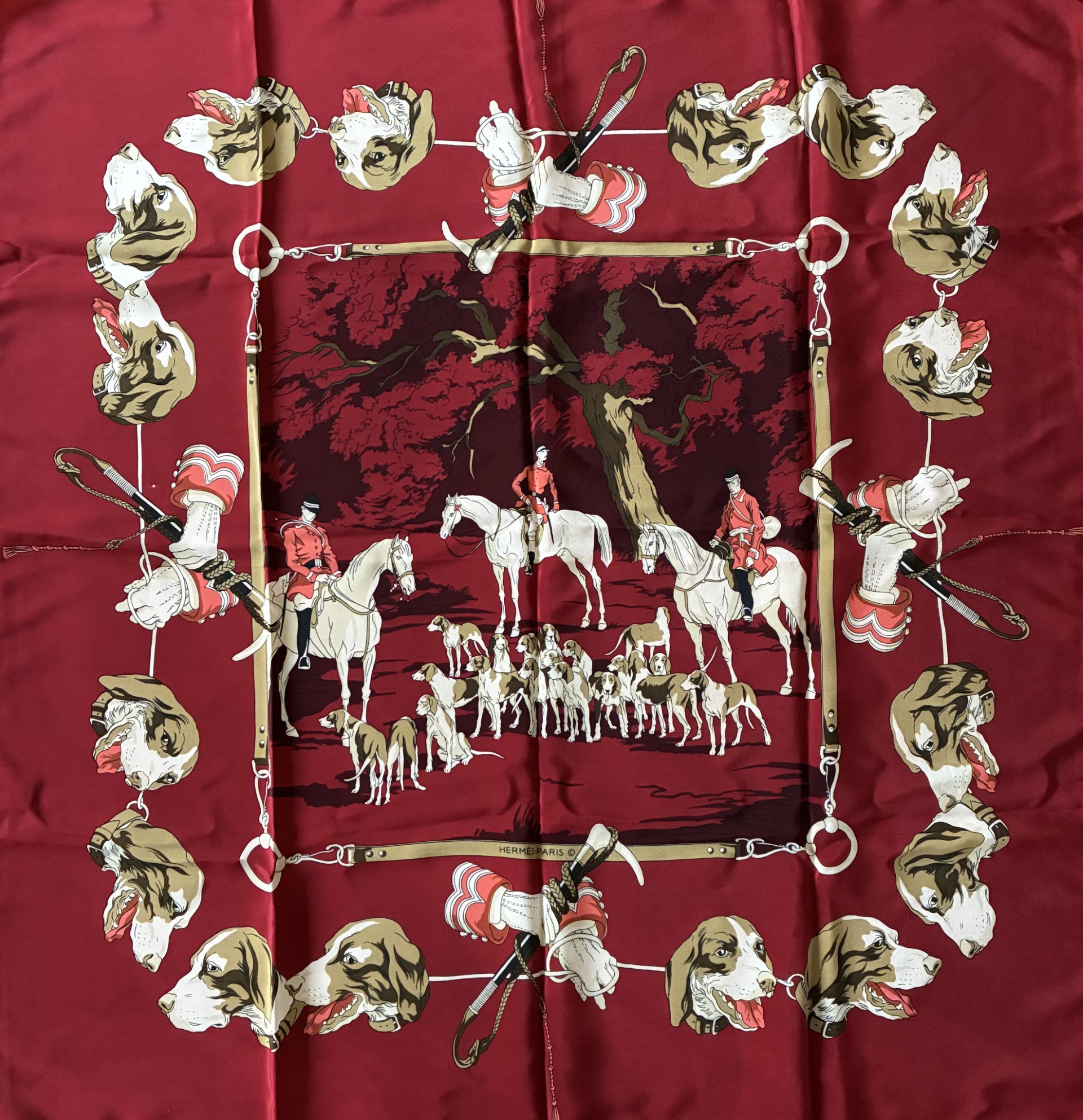 Chasse à courre Pr Hugo Grygkar Sur fond rouge, estampillé en bas au centre et édité en 1950 80 x 80 cm
