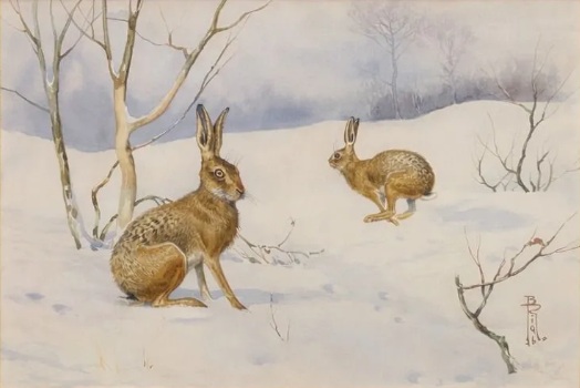 Sanglier dans la neige Aquarelle signée en bas à droite 12×16 cm